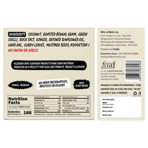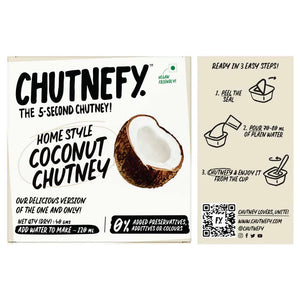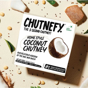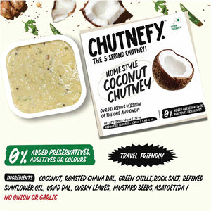 Chutnefy's Home Style Coconut Chutney is a creamy, fragrant, and incredibly flavorful condiment that starts with the essence of our beloved coconut. It's the perfect blend of fresh coconut, roasted bengal gram, a hint of spiciness from green chilies, the earthy aroma of curry leaves, and just the right amount of salt. When all these ingredients come together, it's a harmonious symphony of tastes that we all know and love.