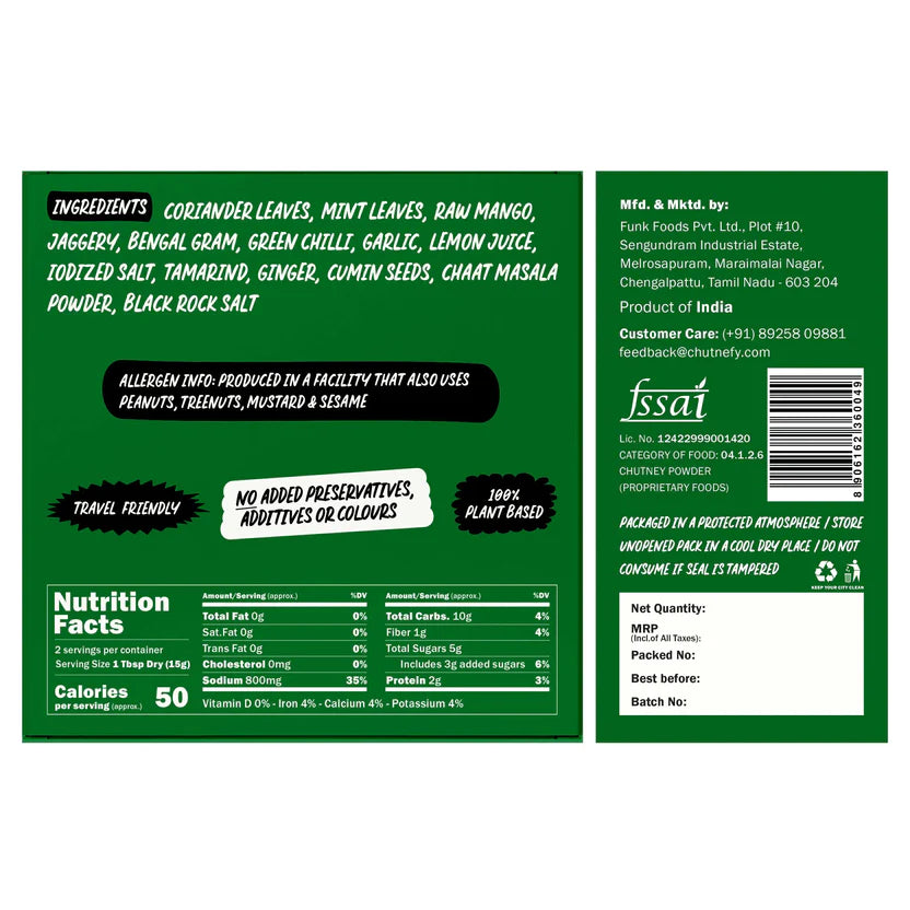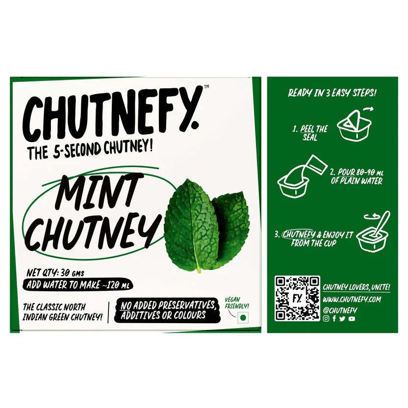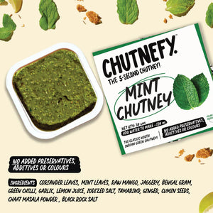 You've probably tried a lot of Green Chutneys, but you've tried none like this. The Chutnefy Mint Chutney packs a delicious fresh taste and is the perfect staple companion to give an authentic finishing touch to your favourite foods, no matter where it's from.