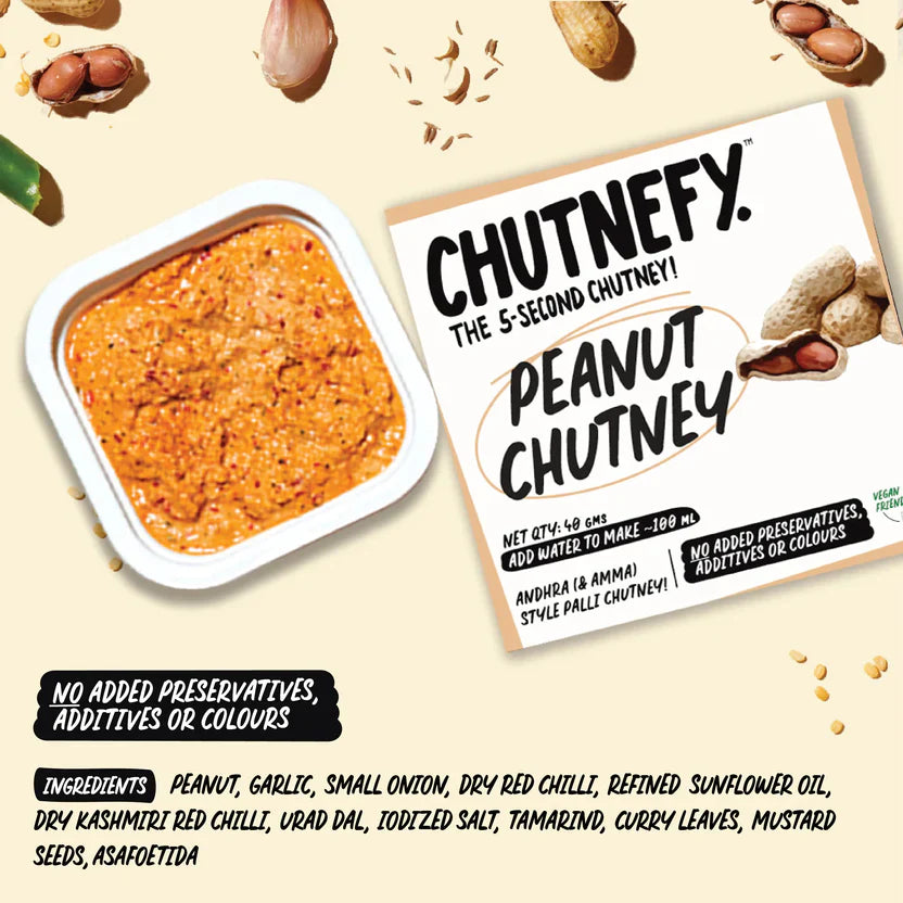 Been a while since you've enjoyed Amma's Palli Chutney? Or want to give mom a well-deserved break? Well, then grab our Chutnefy Peanut Chutney that brings to you that authentic Andhra, home-style flavour - a Staple in most households, and in our range too.