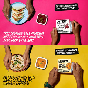 Our un'beet'able Udupi-style Beetroot Chutney that'll make you re-think what beets can taste like. Perfect to pair with your South Indian tiffin! (Spice Meter: Medium) (1 x 25g)