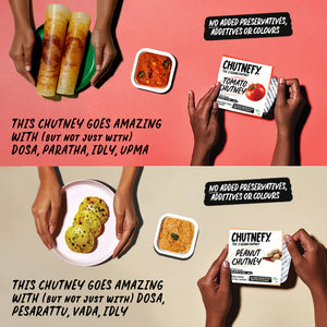 All your Tiffin accompaniments, in one convenient pack. This assortment contains 5 different Chutneys, and Tiffin Sambar that makes for an exotic spread you can enjoy with your South Indian breakfast at home.
