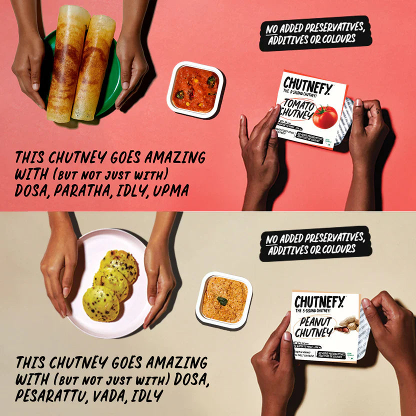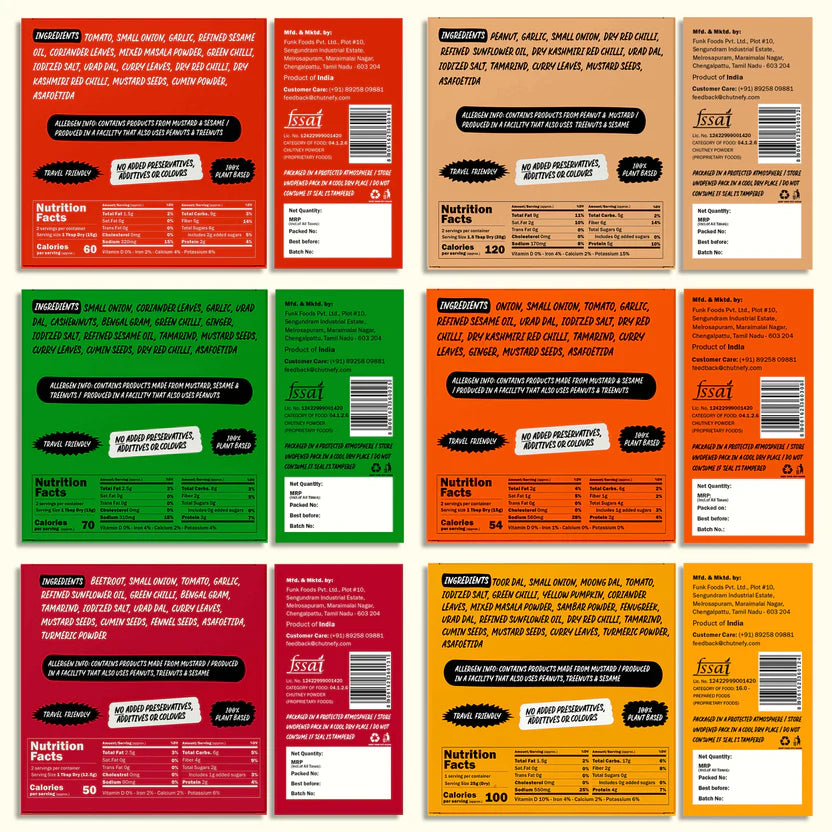 This 6 Pack Combo comes with easy, convenient single-use packs to give you an authentic tiffin experience that'll hit the spot every single time. And it's ready in just a stir! So no more chopping, cooking or dishwashing! Just Peel. Pour. Chutnefy.