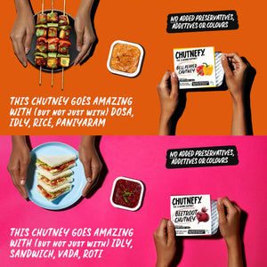Our un'beet'able Beetroot Chutney that'll make you re-think what beets can taste like. Perfect to pair with your South Indian tiffin! (Spice Meter: Medium) (1 x 25g)